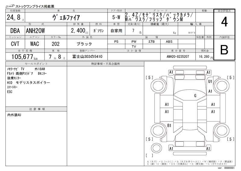 TOYOTA VELLFIRE - лот 12422