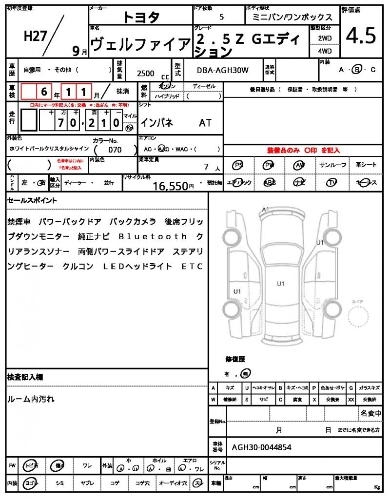 TOYOTA VELLFIRE - лот 42191