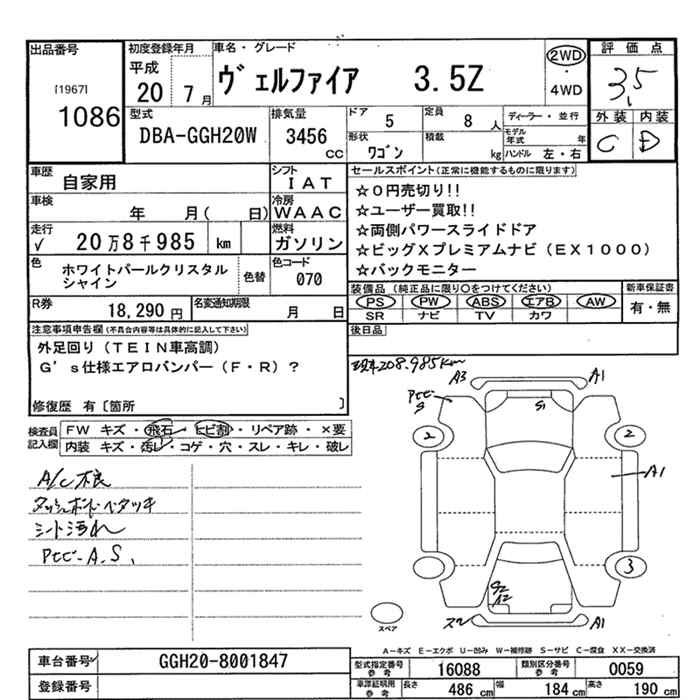TOYOTA VELLFIRE 3.5Z - лот 1086