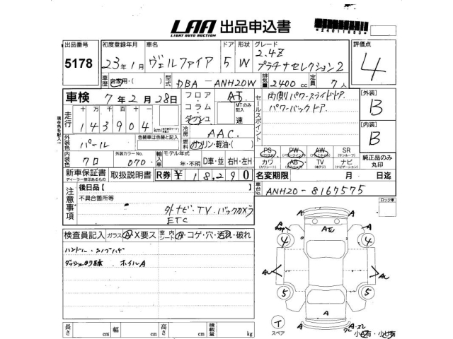 TOYOTA VELLFIRE - лот 5178