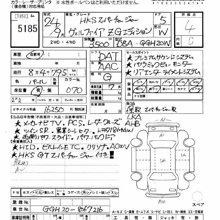 TOYOTA VELLFIRE - лот 5185