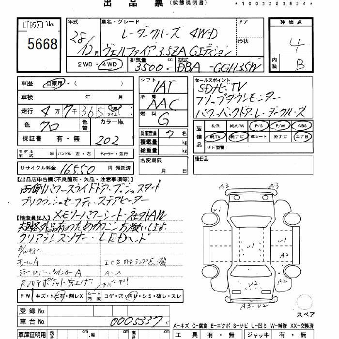 TOYOTA VELLFIRE - лот 5668