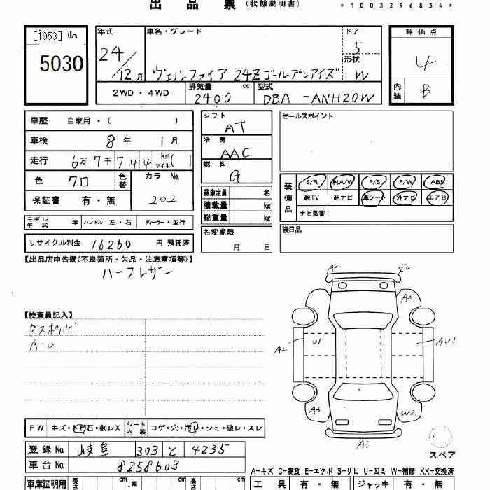 TOYOTA VELLFIRE - лот 5030