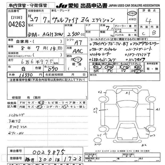 TOYOTA VELLFIRE 2.5Z G EDITION - лот 4263