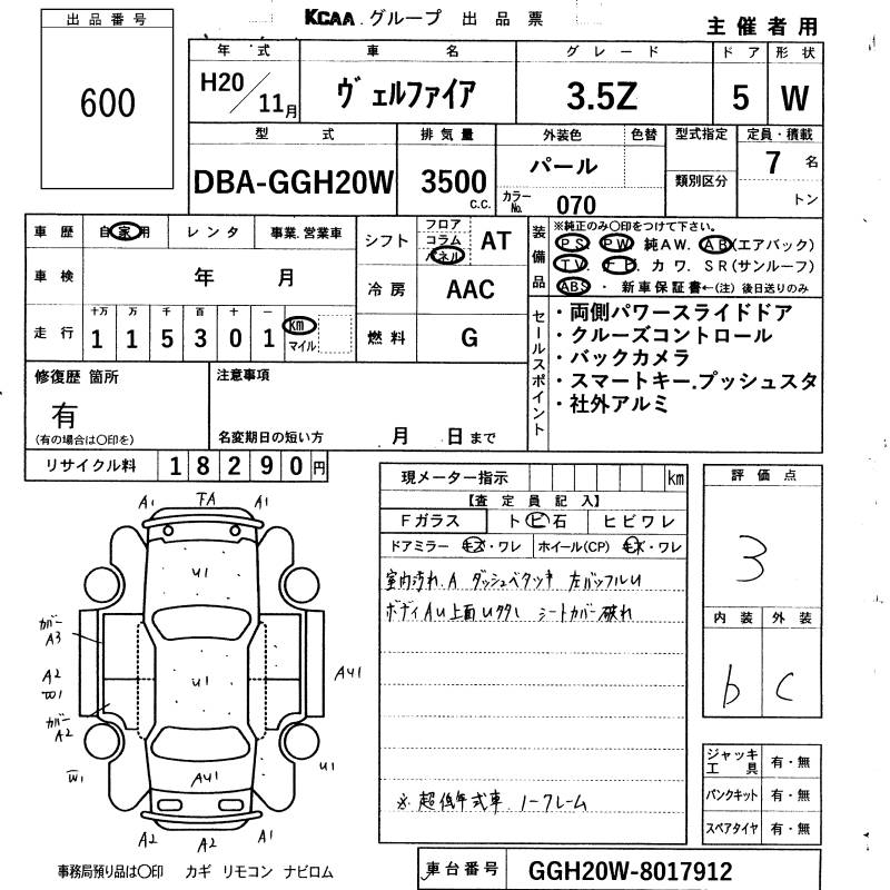 TOYOTA VELLFIRE 3.5Z - лот 600