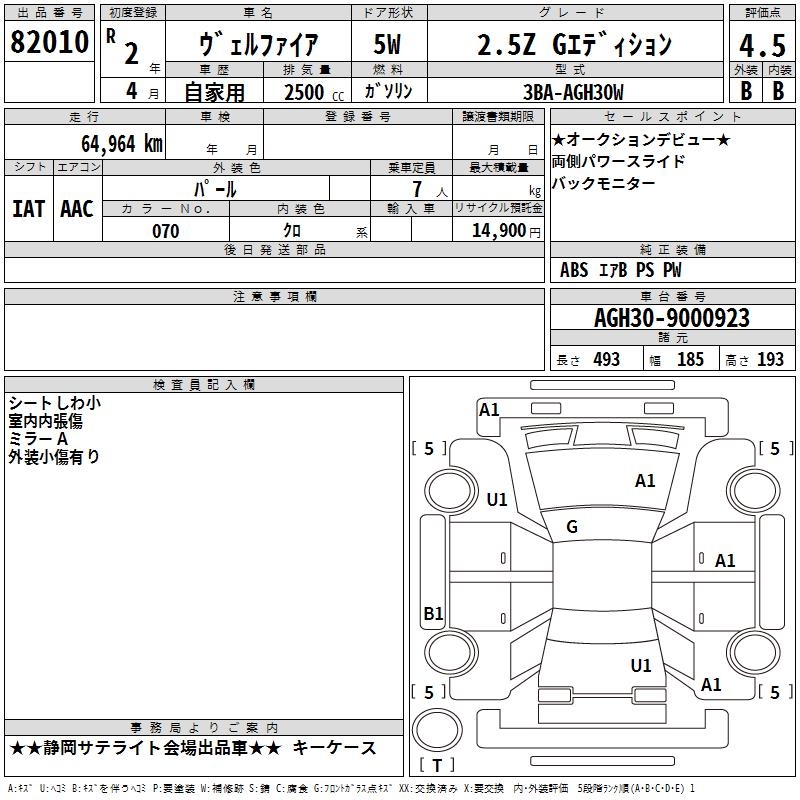 TOYOTA VELLFIRE 2.5Z G EDITION - лот 82010