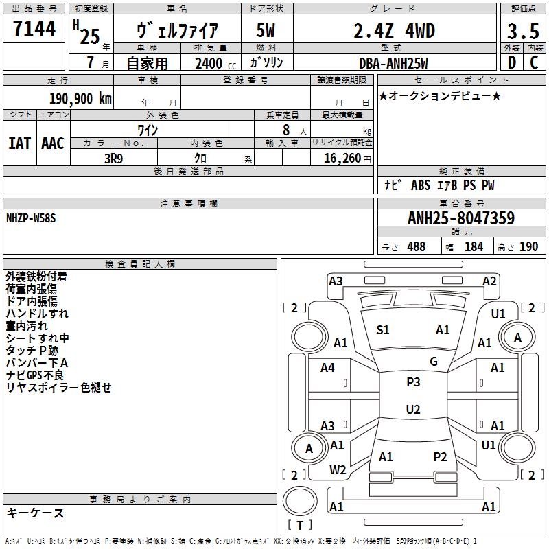 TOYOTA VELLFIRE 2.4Z 4WD - лот 7144