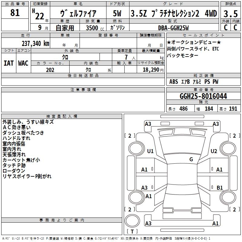 TOYOTA VELLFIRE 3.5Z PLATINUM SELECTION 4WD - лот 81