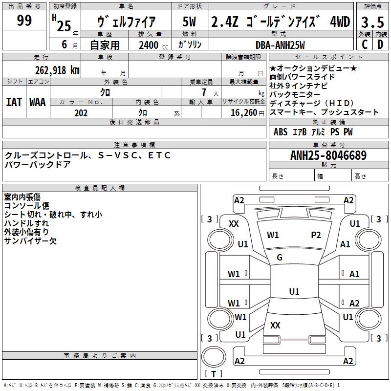 TOYOTA VELLFIRE 2.4Z GOLDEN I Z4WD - лот 99