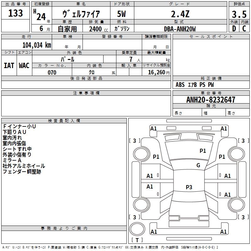 TOYOTA VELLFIRE 2.4Z - лот 133