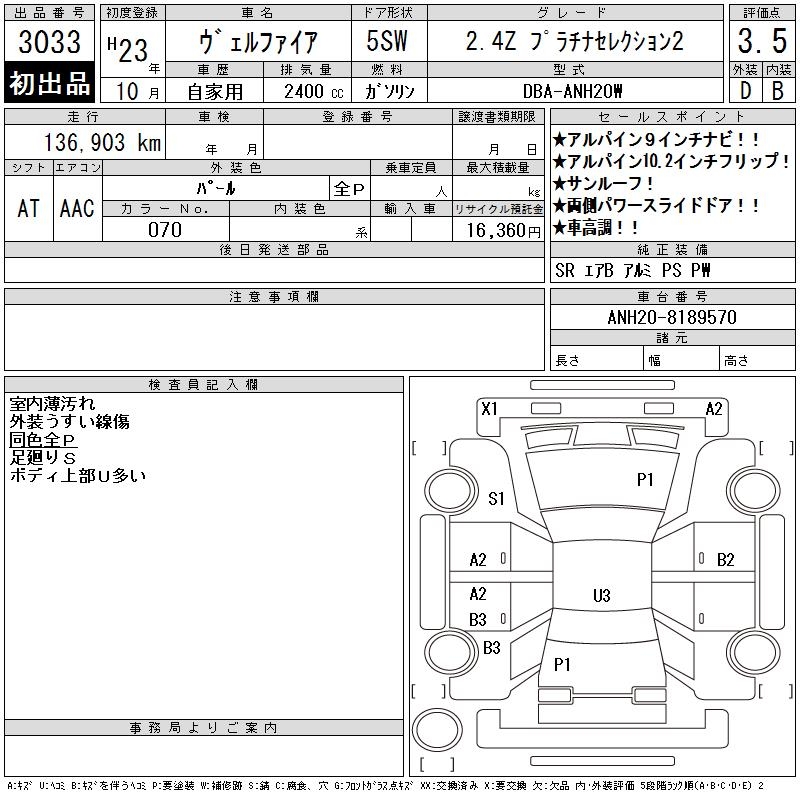 TOYOTA VELLFIRE 2.4Z PLATINUM SELECTION 2 - лот 3033