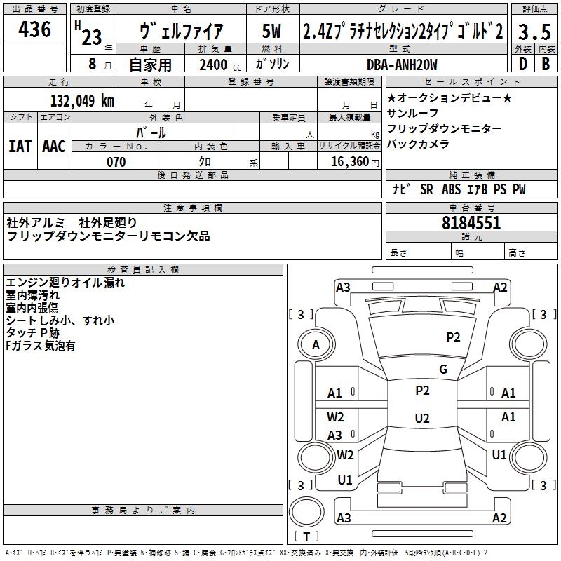 TOYOTA VELLFIRE 2.4Z PLATINUM SELECTION 2GORUDO2 - лот 436