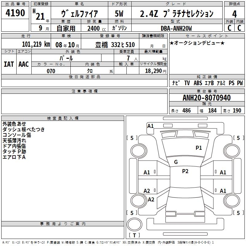 TOYOTA VELLFIRE 2.4Z PLATINUM SELECTION - лот 4190