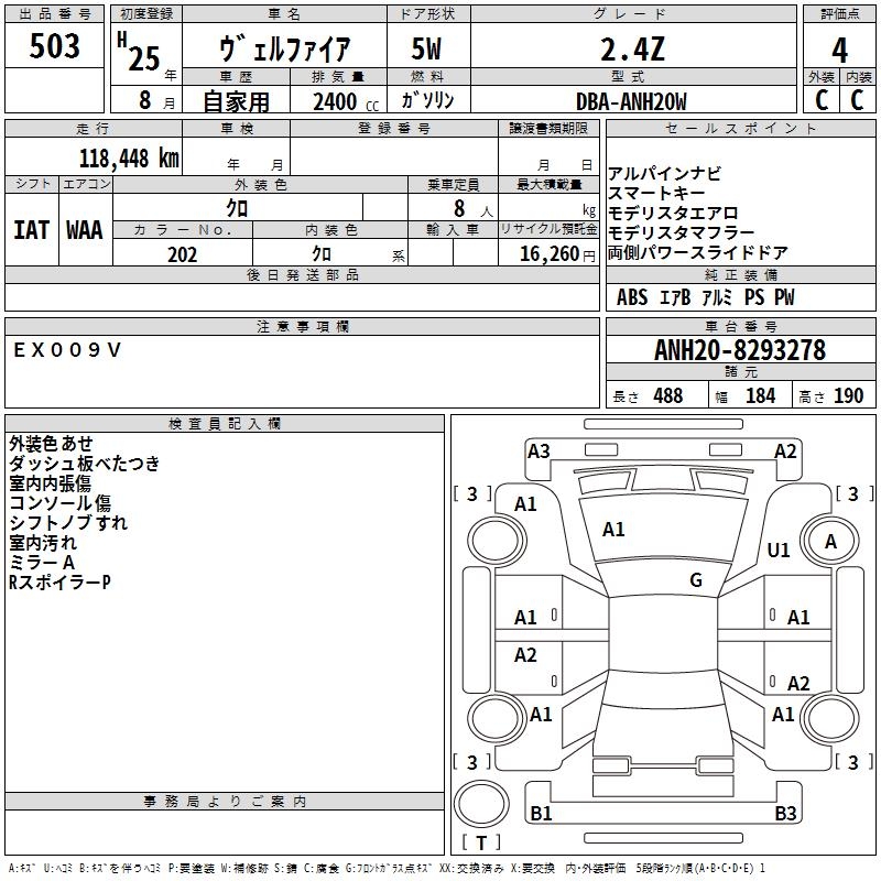 TOYOTA VELLFIRE 2.4Z - лот 503