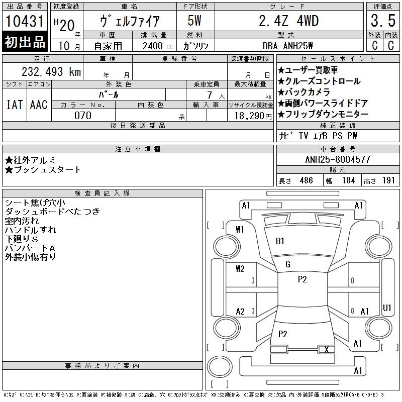 TOYOTA VELLFIRE 2.4Z 4WD - лот 10431