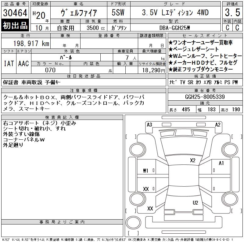 TOYOTA VELLFIRE 3.5V L EDITION 4WD - лот 30464