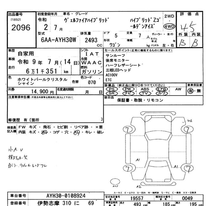 TOYOTA VELLFIRE 4WD HYBRID Z GOLDEN I Z - лот 2096