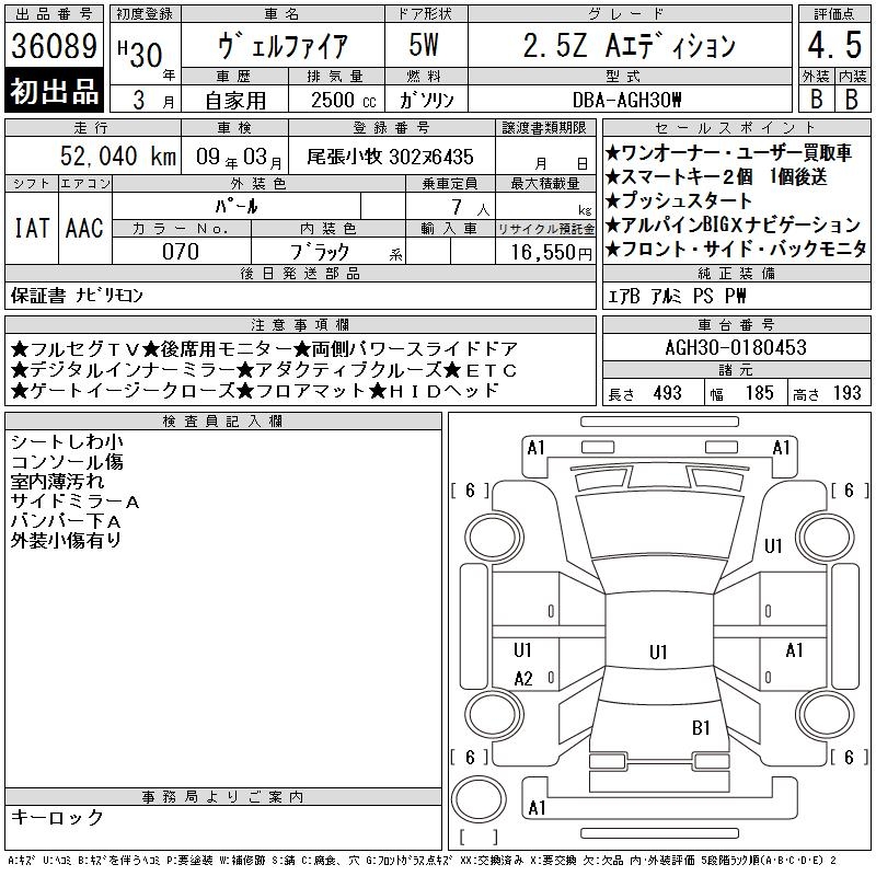 TOYOTA VELLFIRE 2.5Z A EDITION - лот 36089