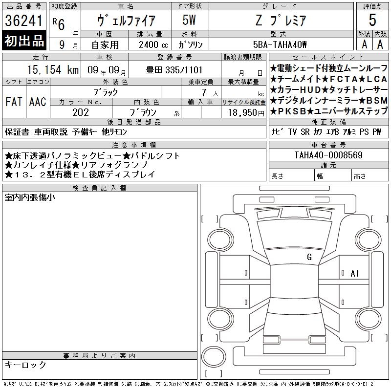 TOYOTA VELLFIRE Z PREMIUM - лот 36241