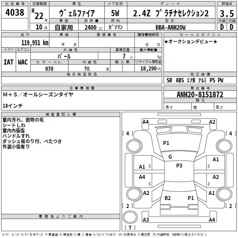 TOYOTA VELLFIRE 2.4Z PLATINUM SELECTION 2 - лот 4038