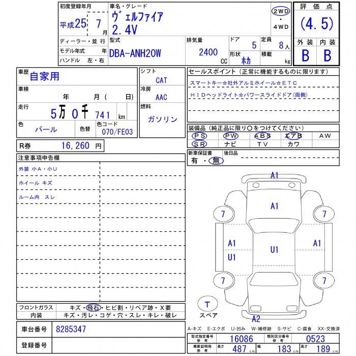TOYOTA VELLFIRE - лот 55954