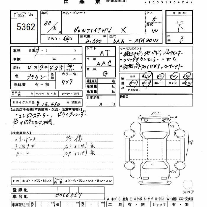 TOYOTA VELLFIRE - лот 5362