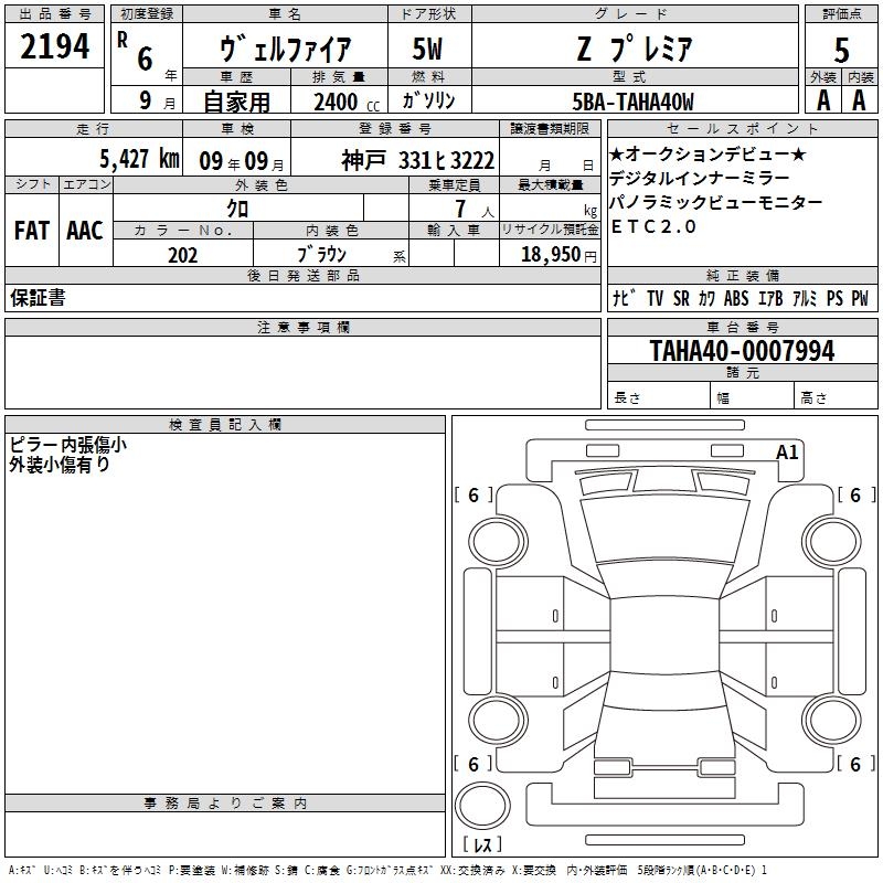 TOYOTA VELLFIRE Z PREMIUM - лот 2194