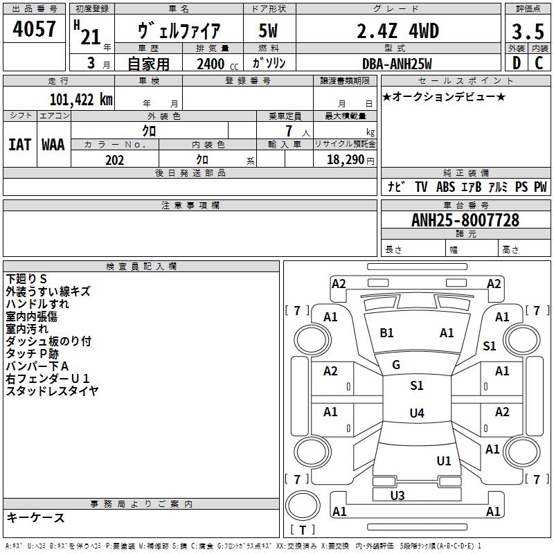 TOYOTA VELLFIRE 2.4Z 4WD - лот 4057