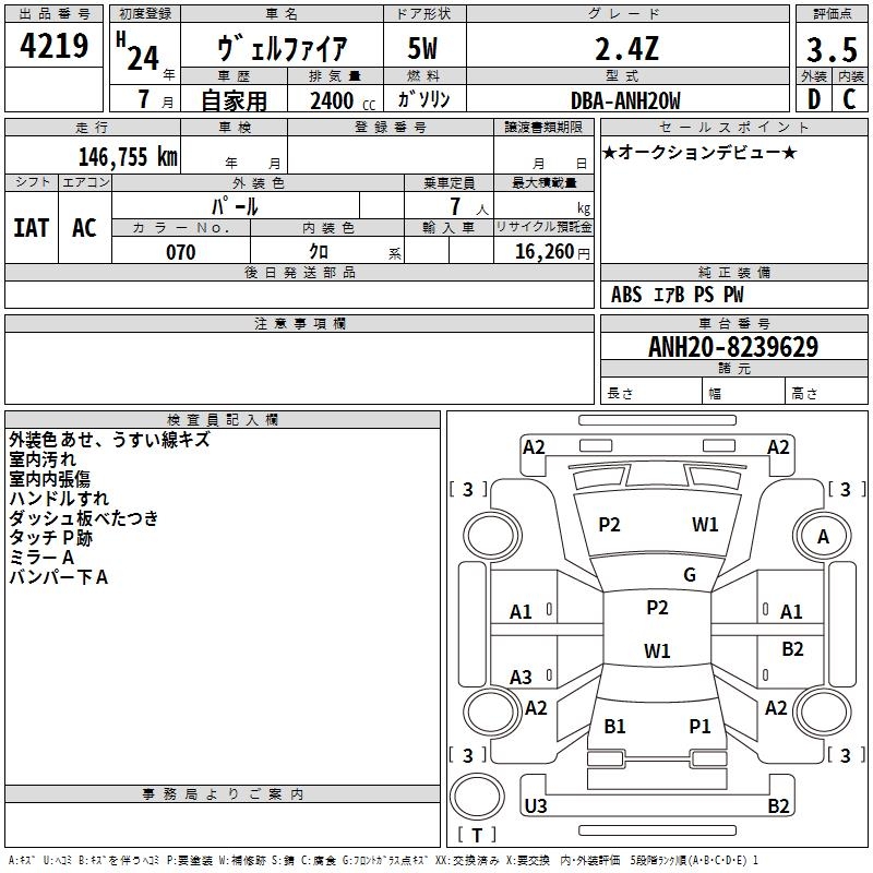 TOYOTA VELLFIRE 2.4Z - лот 4219