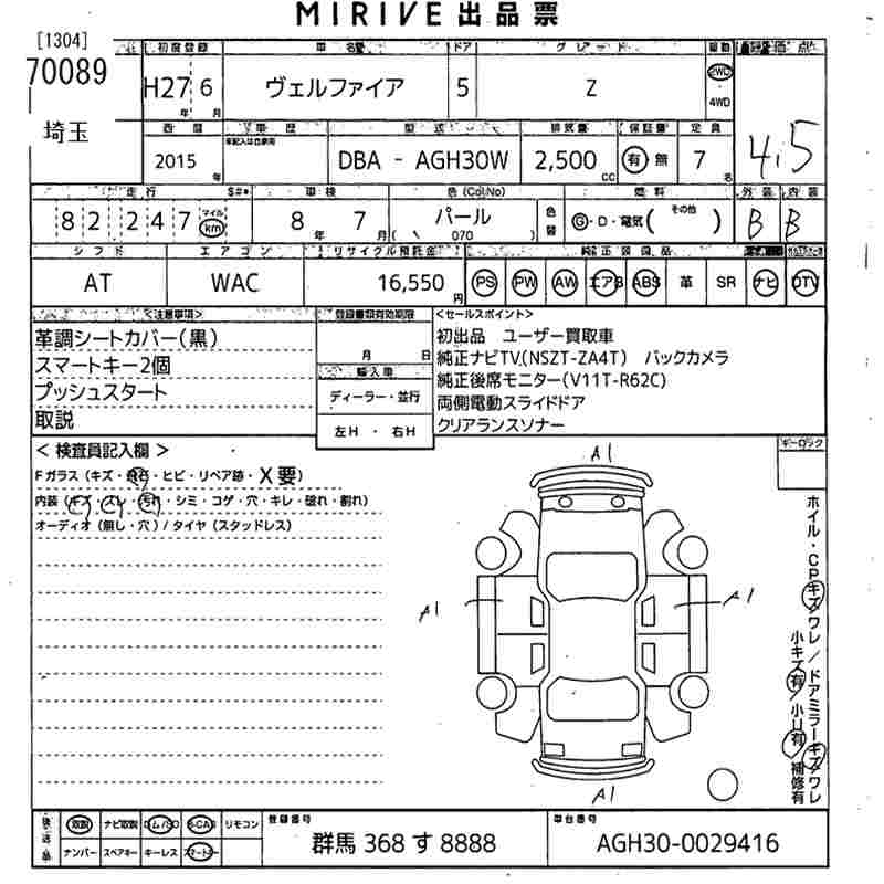 TOYOTA VELLFIRE Z - лот 70089