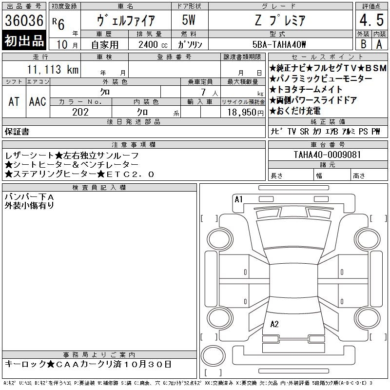 TOYOTA VELLFIRE Z PREMIUM - лот 36036