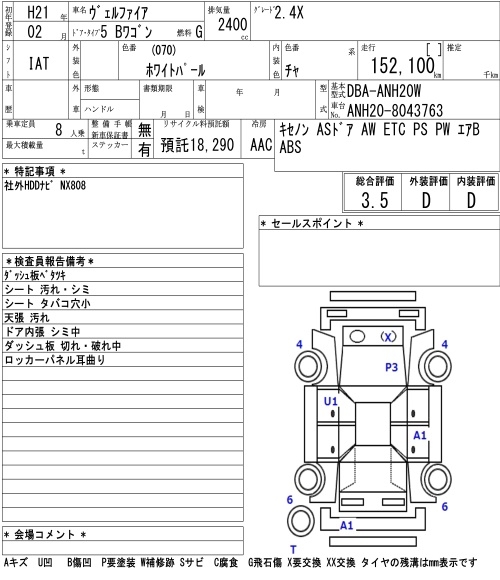 TOYOTA VELLFIRE 2.4X - лот 4152