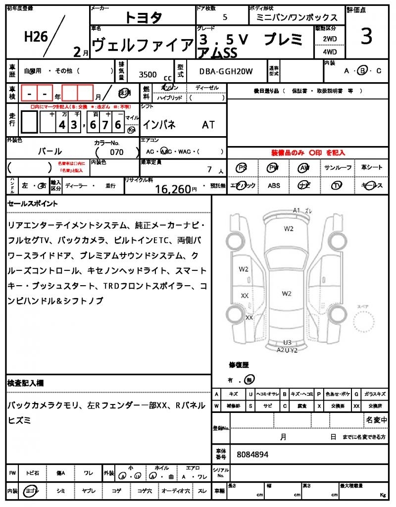 TOYOTA VELLFIRE - лот 59741