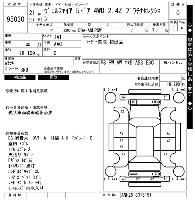 TOYOTA VELLFIRE 2.4Z PLATINUM SELECTION - лот 95030