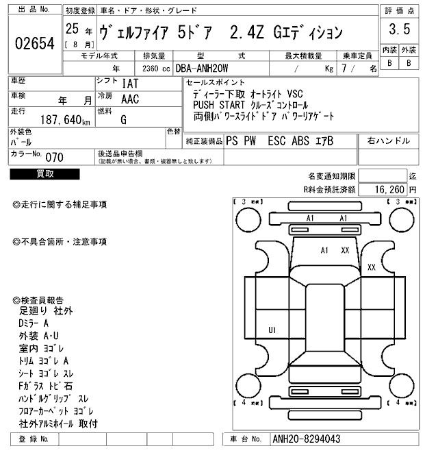 TOYOTA VELLFIRE 2.4Z G EDITION - лот 2654