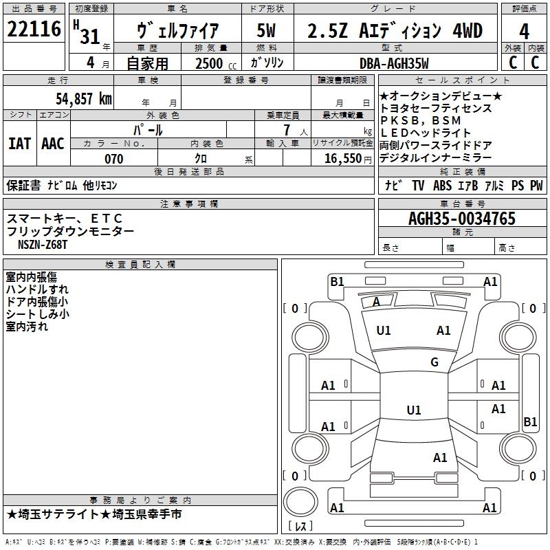 TOYOTA VELLFIRE 2.5Z A EDITION 4WD - лот 22116