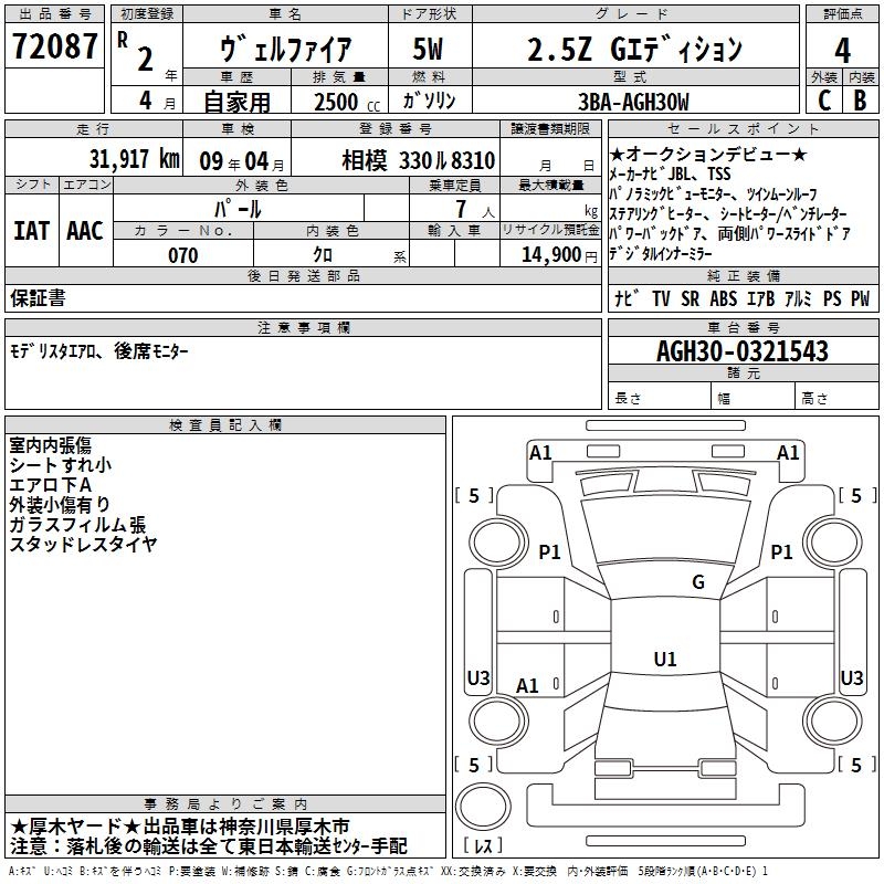 TOYOTA VELLFIRE 2.5Z G EDITION - лот 72087