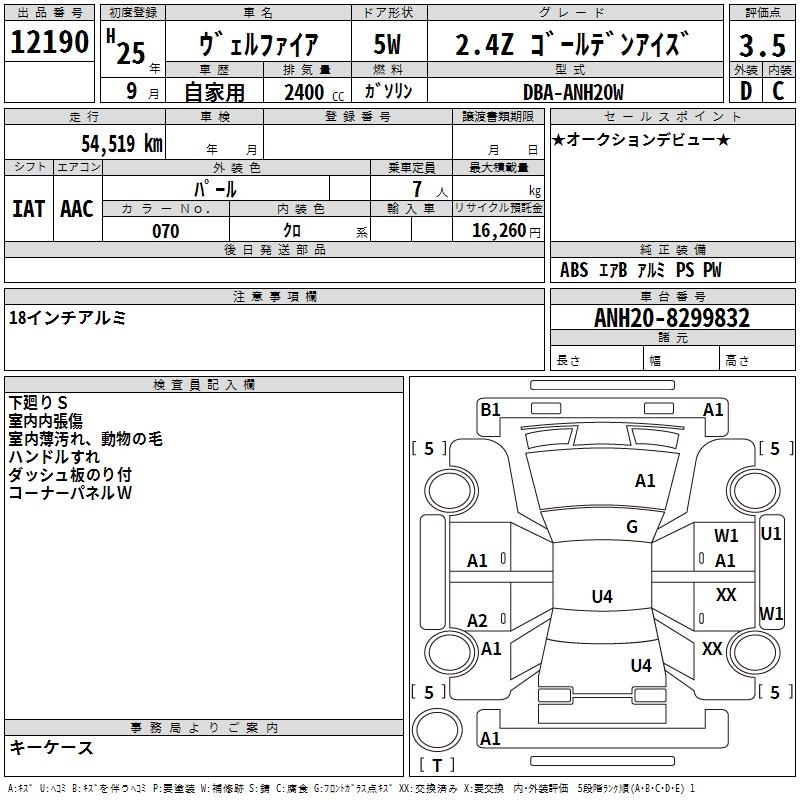 TOYOTA VELLFIRE 2.4Z GOLDEN I Z - лот 12190