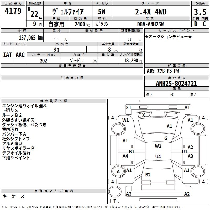 TOYOTA VELLFIRE 2.4X 4WD - лот 4179