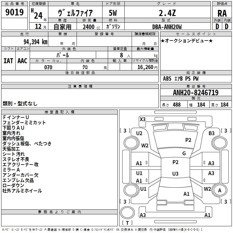 TOYOTA VELLFIRE 2.4Z - лот 9019