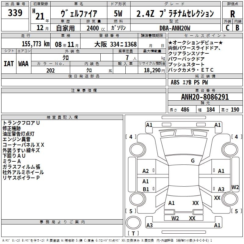 TOYOTA VELLFIRE 2.4Z PLATINUM SELECTION - лот 339
