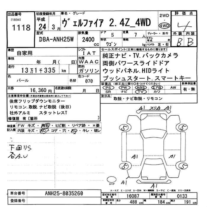 TOYOTA VELLFIRE 4WD 2.4Z - лот 1118