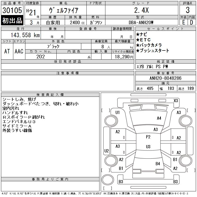 TOYOTA VELLFIRE 2.4X - лот 30105