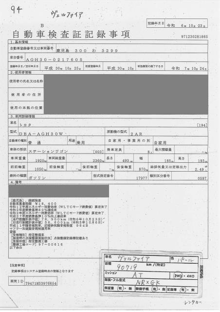 TOYOTA VELLFIRE X 8 NUMBER OF SEATS - лот 94
