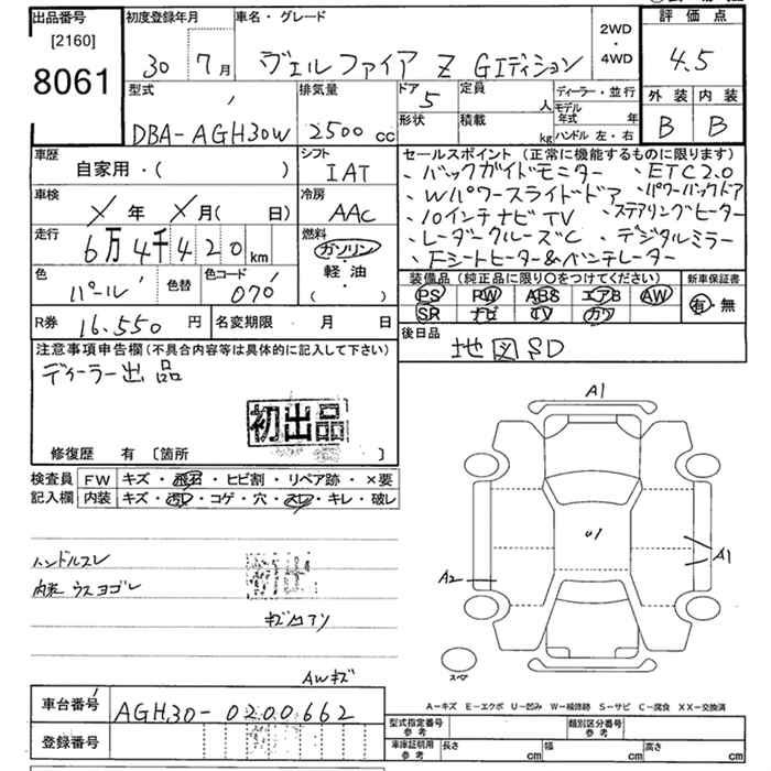 TOYOTA VELLFIRE Z G EDITION - лот 8061