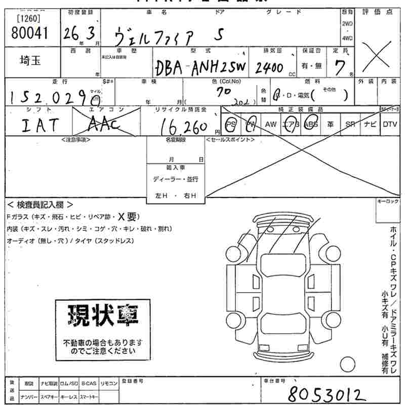 TOYOTA VELLFIRE - лот 80041