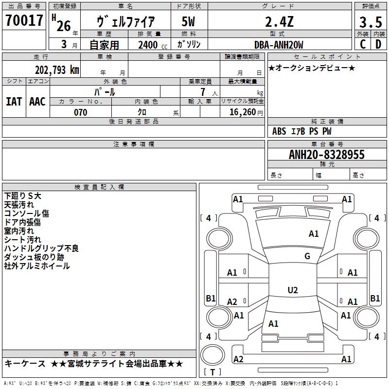 TOYOTA VELLFIRE - лот 70017