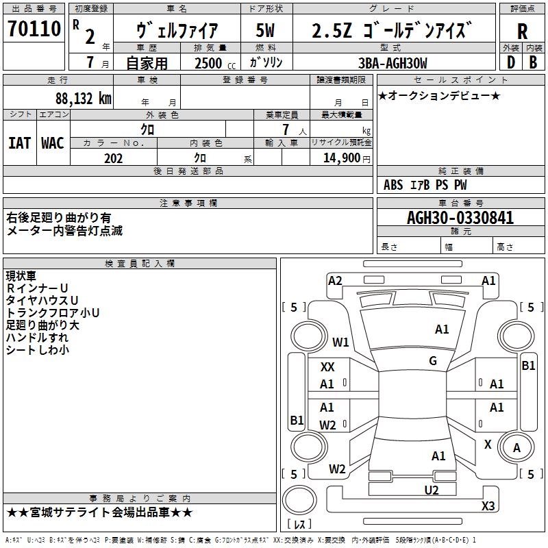 TOYOTA VELLFIRE - лот 70110