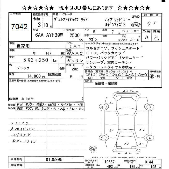 TOYOTA VELLFIRE - лот 7042