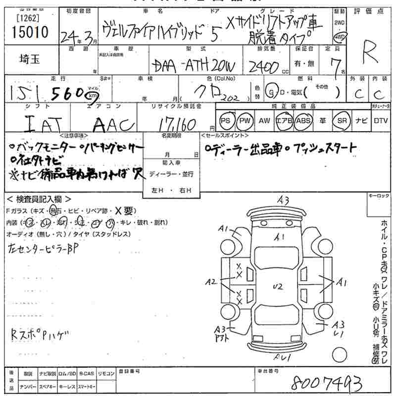 TOYOTA VELLFIRE - лот 15010
